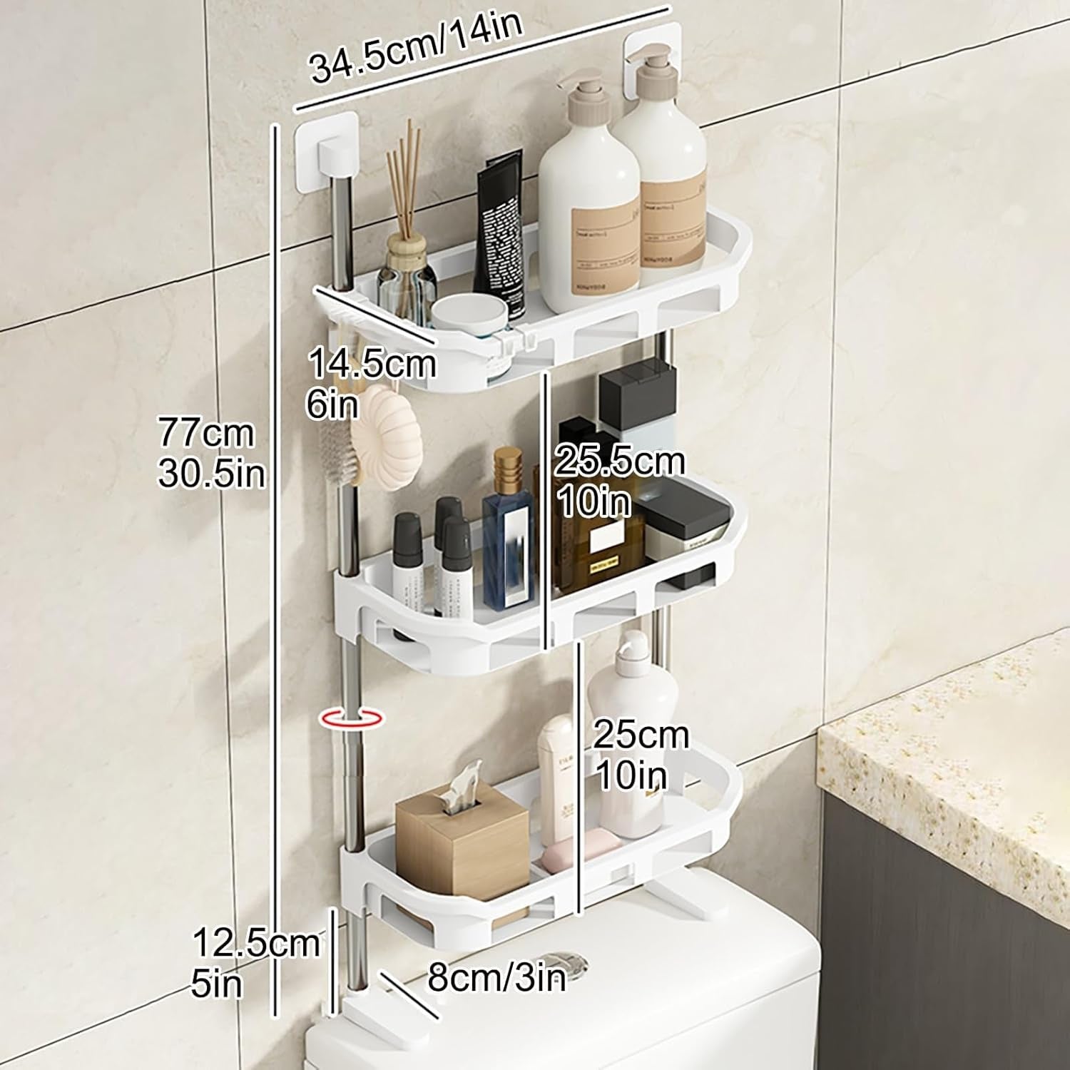 3-Tier Multifunctional Toilet Shelf – Over-The-Toilet Bathroom Organizer