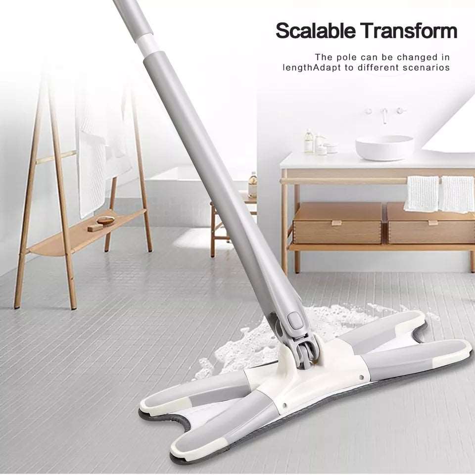 - 360? ROTATING MOP HEAD:?The 360? rotatable head along with the X-shaped design makes it easy to maneuver around hard-to-reach?areas. The 55" (140 cm) extra-long steel handle in a slim design gives the flat mop easy access to narrow spaces like gaps or slots under the?bed or between the sofas. With our hard floor mop, you can enjoy an efficient house cleaning experience. No more bending over to mop ever!??