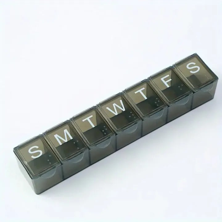 7 Labeled Compartments – Clearly marked S–M–T–W–T–F–S for easy daily organization.
