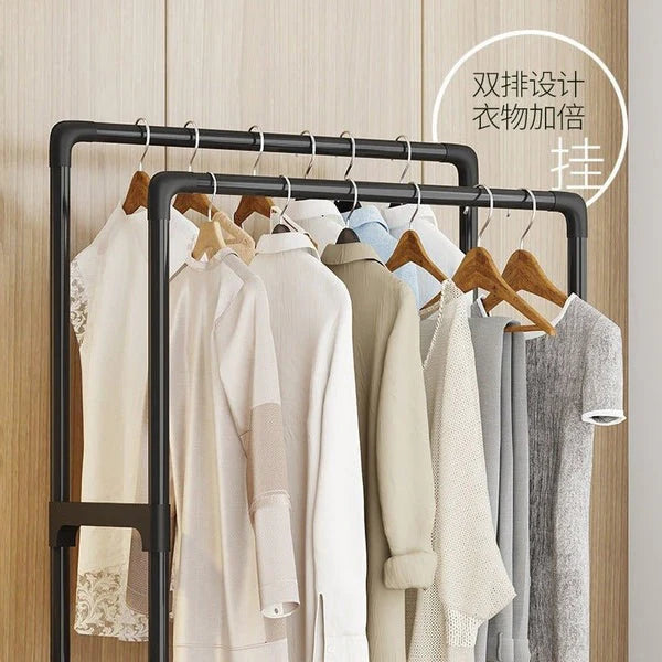 Simple Indoor Double Pole Coat Rack (4l4-Layer Double Pole Coat Rack – Freestanding Clothes Organizerayer)