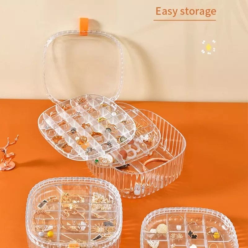 Keep your jewelry beautifully displayed and perfectly organized with this Transparent Crystal Jewelry Organizer, designed for those who love elegance and functionality. Featuring multi‑grid compartments, it safely stores rings, earrings, studs, and other small accessories without mixing or tangling.