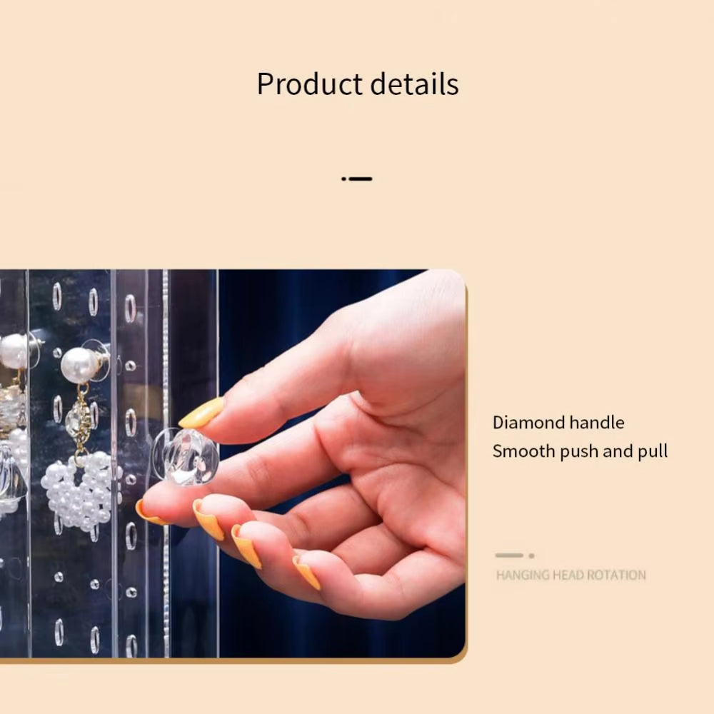 Perfect for earrings, necklaces, rings, bracelets, and small accessories, this organizer offers a dust‑proof, visually stunning display that enhances any dressing table or bedroom décor. Its vertical design saves space while providing maximum storage capacity — ideal for both personal and professional use.